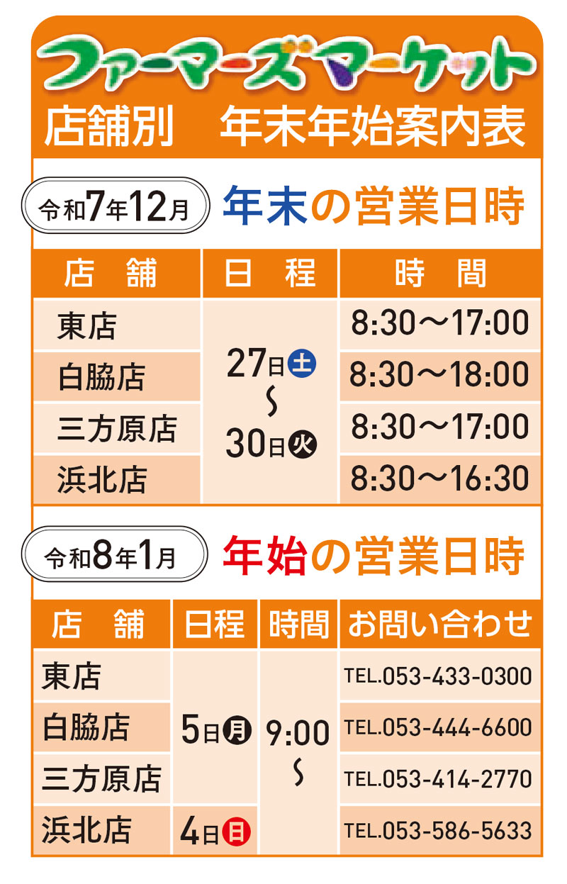 ファーマーズマーケット【店舗別】年末年始営業案内