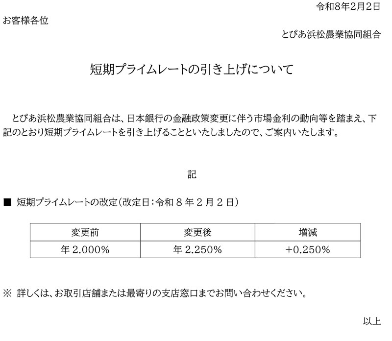 短期プライムレートの引き上げについて