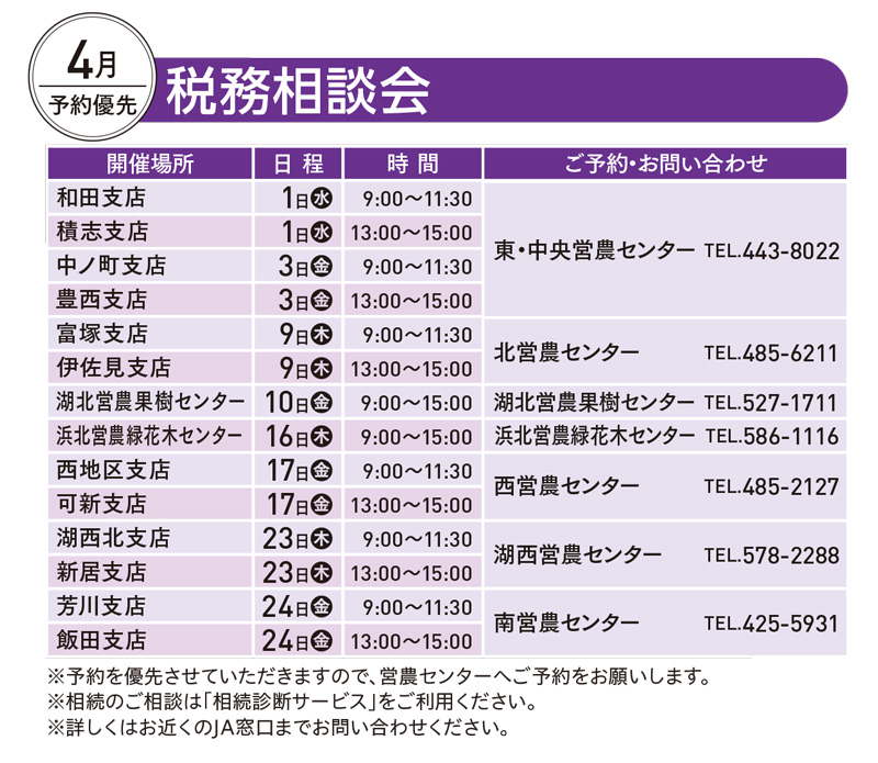 税務相談会のご案内(4月)