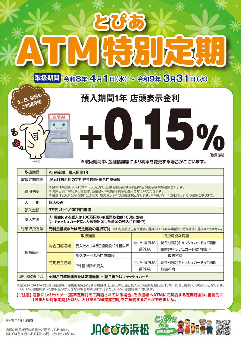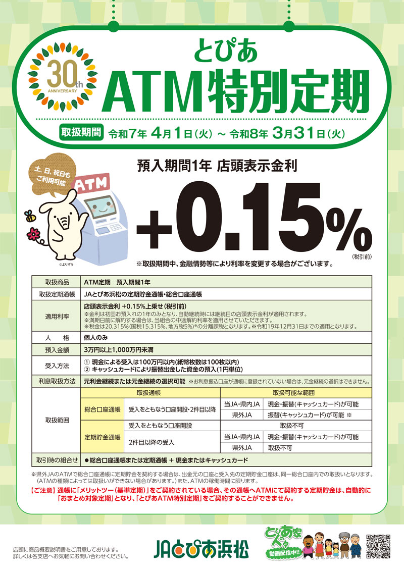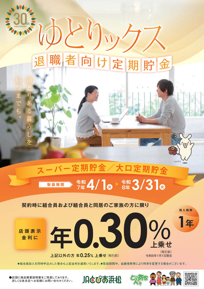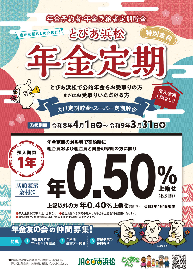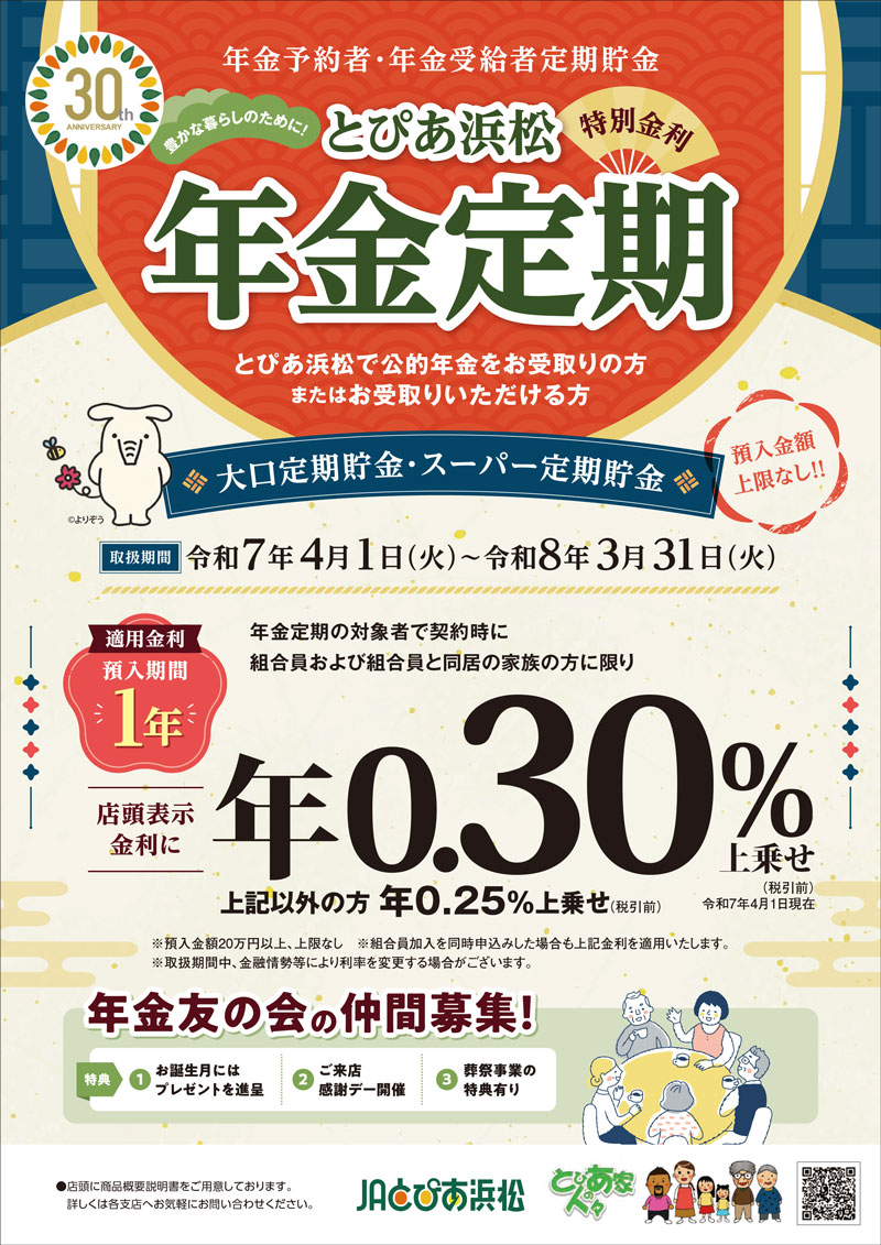 とぴあ浜松年金定期貯金・年金予約者定期貯金