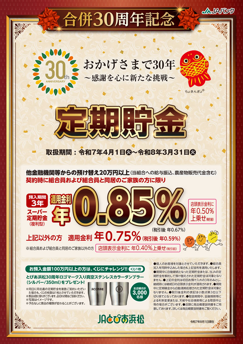 とぴあ浜松年金定期貯金・年金予約者定期貯金